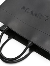 logo-embossed leather tote bag A multitasking accessory crafted from calf leather, this black Lanvin tote bag boasts a wide silhouette with a spacious main compartment and removable pouch, ideal for storing essentials. Meanwhile, two rolled top handles and a detachable shoulder strap allow multiple carrying alternatives. It is decorated with an embossed logo to the front, a subtle branding touch in an otherwise unadorned design. Highlights - Black - Calf leather - Embossed logo to the front - Open top - Detachable shoulder strap - Two rolled top handles - Main compartment - Removable pouch Made in Italy Composition Outer: Calf Leather 100%, Brass 50%, zamac 50% Lining: Calf Leather 100% SIZE & FIT Model measurements Height 5 ft 10 in(1.78 m) Bust/Chest 33.07 in(84 cm) Hips 36.61 in(93 cm) Waist 24.8 in(63 cm) Measurement DEPTH 6.29 in(16 cm) HANDLE 5.9 in(15 cm) HEIGHT 11.81 in(30 cm) STRAP 21.65 in(55 cm) WIDTH 17.71 in(45 cm)