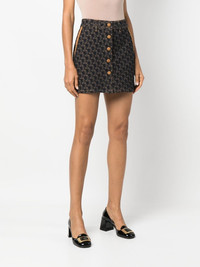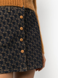 logo-jacquard denim skirt Lanvin's JL logo motif signifies the brand's rich heritage, displaying the founder's initials in a graphic two-tone design. Woven into this button-front skirt, the modern denim construction adds a refreshing twist to the historical emblematic monogram. Made in Italy Composition Cotton 47%, Viscose 24%, Wool 23%, Polyamide 6% SIZE & FIT Model measurements Height 5 ft 10 in(1.78 m) Bust/Chest 33.07 in(84 cm) Hips 36.61 in(93 cm) Waist 24.8 in(63 cm) FittingInformation This piece fits true to size. We recommend you get your regular size Designed to be fitted at the waist and hips, loose over the leg Made with a mid-weight non-stretch fabric Washing instructions Dry Clean Only