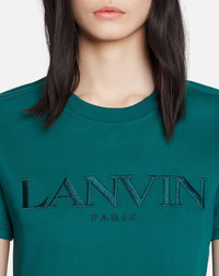 The iconic “Lanvin Paris” design adorns this classic straight-fit T-shirt, combining a casual silhouette with the sophisticated aesthetic heritage of the House. Details - Classic T-shirt in cotton jersey with Lanvin logo - Straight fit with crew neck - Tone-on-tone Lanvin logo embroidered on the front. - Short sleeves - Color: dragon - Made in Italy Size and fit - This style fits true to size, take your usual size. - For more information, please see our size guide. Composition - Main fabric: 100% cotton Cleaning and care - All our items are shipped in a luxurious Lanvin gift box done in the colors of the brand. - At Lanvin, we take great care to ensure we only select the finest materials. Please check the care label on your ready-to-wear item before proceeding with any cleaning. - If you have a question or concern, please contact our customer service department or visit one of our stores, where our staff will be happy to assist you and provide you with more information about our services. SKU: RW-TS0030-J208-H23275XS