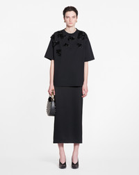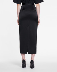 This long skirt is crafted from satin fabric to create a flowy and sophisticated silhouette. Feminine curves accentuate the elegant design of this high-waisted pencil skirt. Details - Long flowy satin skirt - Pencil-cut long skirt with slit - High waist - Invisible side zipper - Welt pockets - Color: black - Made in Italy Size and fit - This style fits true to size, take your usual size. - For more information, please see our size guide. Composition - Main fabric: 63% triacetate, 37% polyester - Lining: 100% silk Cleaning and care - All our items are shipped in a luxurious Lanvin gift box done in the colors of the brand. - At Lanvin, we take great care to ensure we only select the finest materials. Please check the care label on your ready-to-wear item before proceeding with any cleaning. - If you have a question or concern, please contact our customer service department or visit one of our stores, where our staff will be happy to assist you and provide you with more information about our services. SKU: RW-ST0003-5822-H231036