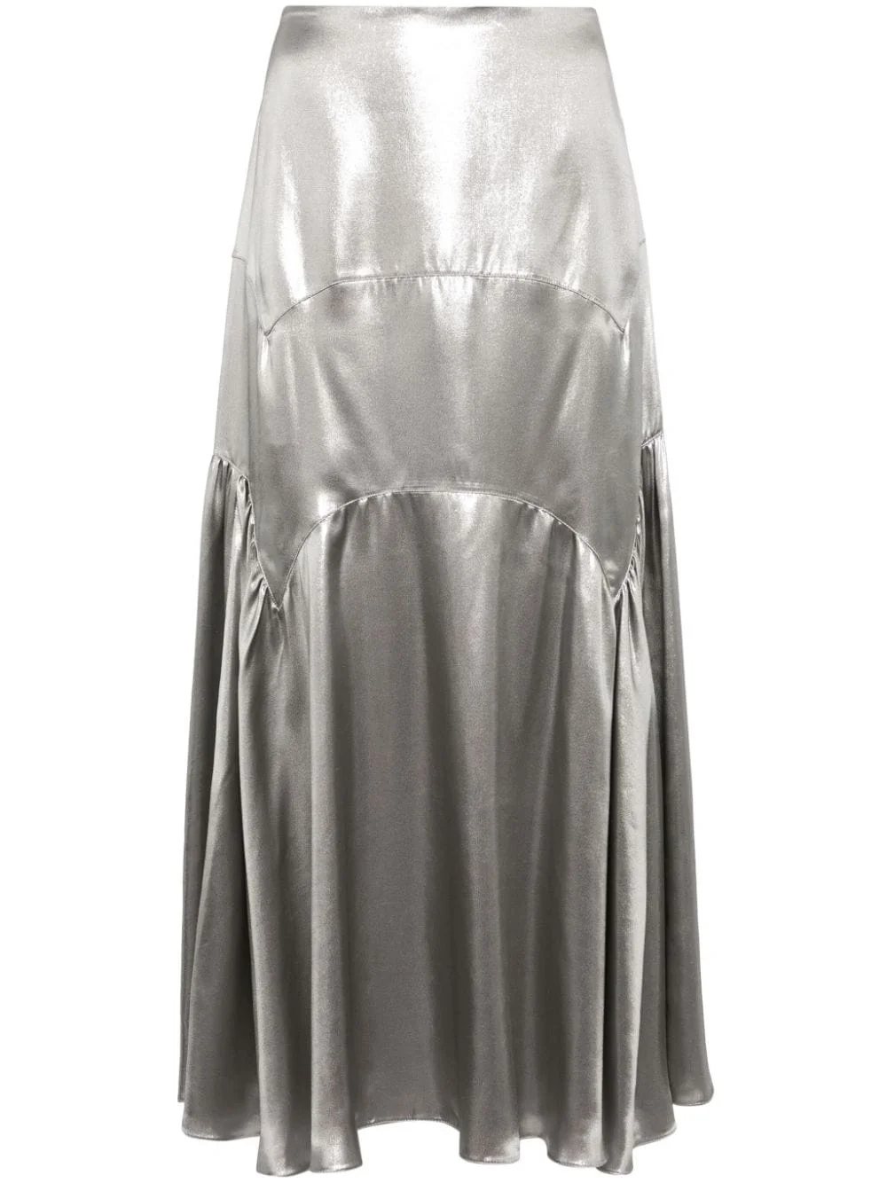 metallic long skirt Highlights - Silver-tone - Silk blend - Metallic finish - High-waisted - Fluid - Long length Made in Italy Composition Lining: Acetate 73%, Silk 27% Outer: Viscose 100% Washing instructions Dry Clean Only