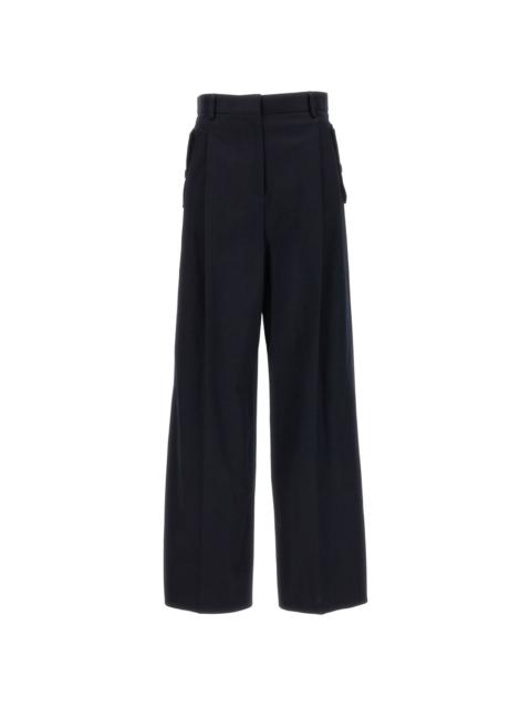 wide-leg trousers Highlights - Midnight blue - Concealed front fastening - Two side flap pockets - Two rear flap pockets - Belt loops Made in Italy Composition Cotton 100% SIZE & FIT FittingInformation Designed with a wide-leg cut, these trousers allow for a close fit at the waist and offer a loose and roomy fit over the leg Made from a midweight non-stretch fabric