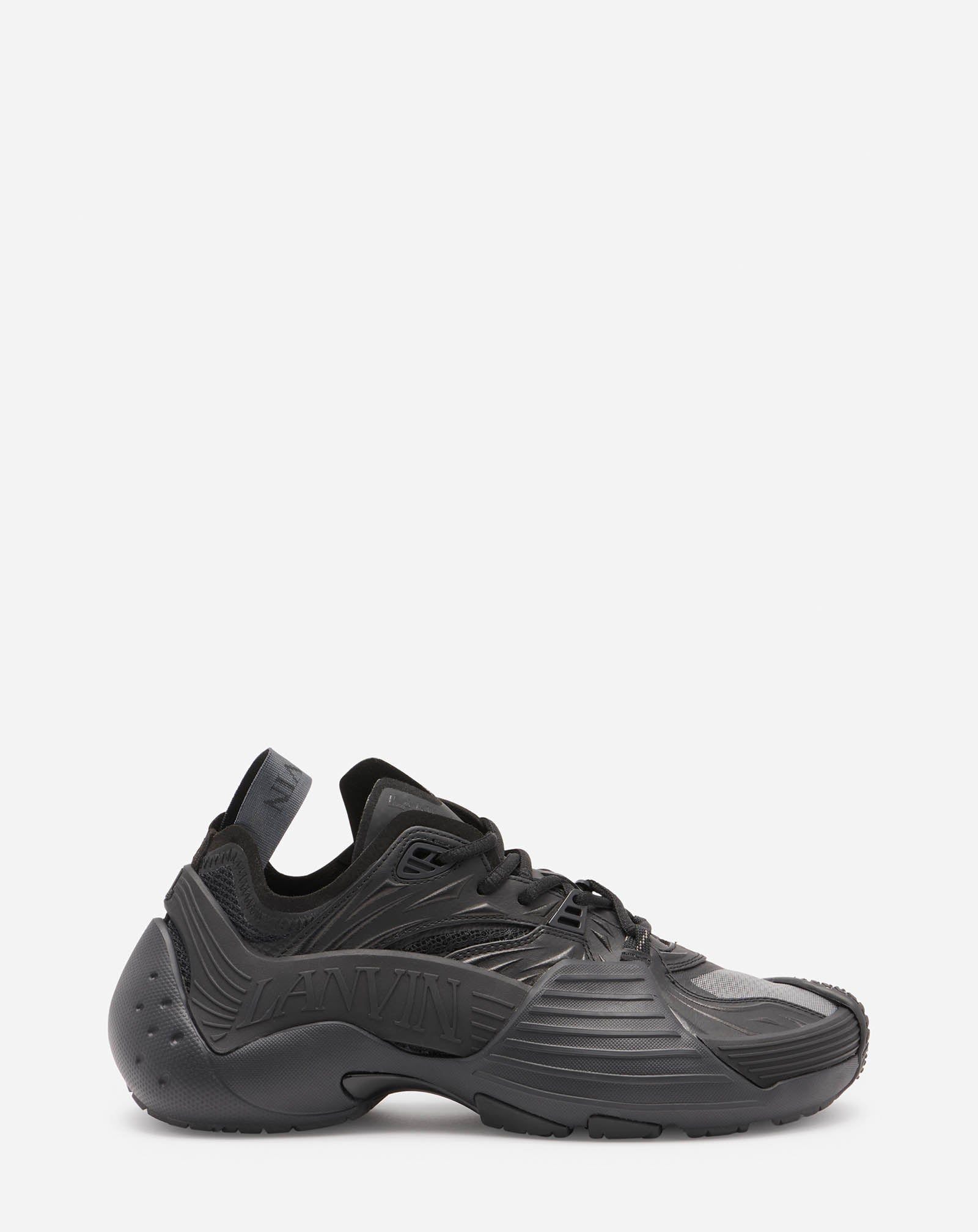 New original Lanvin creation, the Flash-X stands out by its original design and technicity. Made from pieces of technical materials all custom made, it surprises by its roundness, its palette of colors and its comfort. Details - Mesh Flash-X sneakers, technical material and TPU - Color: Black - Front and back tongue with Lanvin logo - Lanvin logo on the side of the sole - Mother and Child logo on the edge of the upper - Sole: TPU and rubber - Made in Indonesia Composition - Main material: Mesh - Material 2: PU micro fiber - Material 3: EVA - Sole: TPU and rubber Cleaning and care - Using a damp cloth, make circular movements. In case of stains or marks, add a few drops of liquid soap. Allow to air dry. - Store in a dry, dark place in its original packaging. SKU: FW-SKIK00-MEFR-P231035