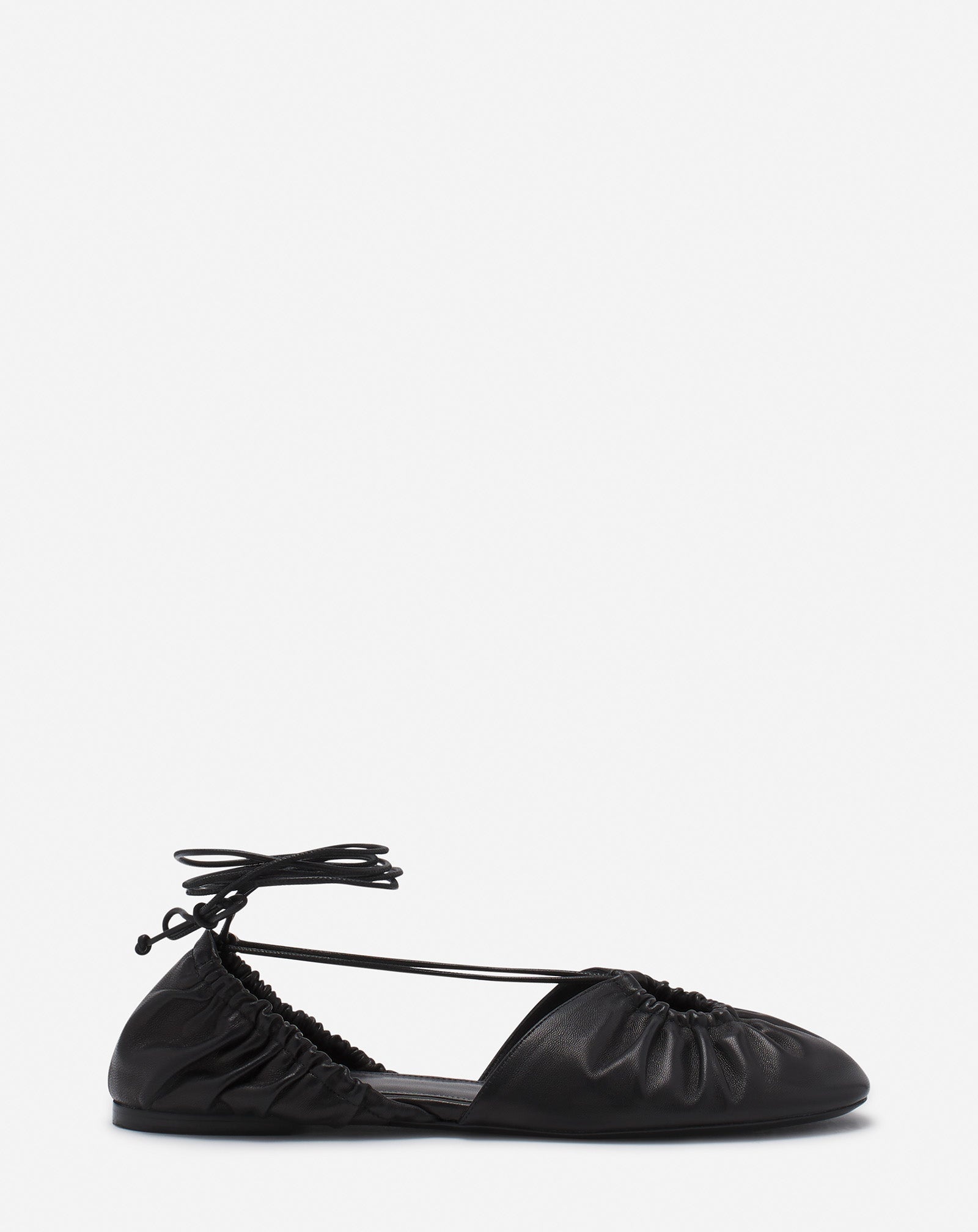 Inspired by the lexical field of music, these Mesure soft leather ballerina flats with straps are feminine and elegant. The soft leather is pleated, evoking the drapery of the Charmeuse dress, an iconic piece from the House. The strap, reminiscent of Jeanne Lanvin's signature Ribbon, can be tied any way you like. Details - Round toe - Flat heel - Criss-cross straps - Lanvin logo embossed on the insole - Made in Italy Size & fit - This style fits true to size, you may take your usual size. - The size displayed corresponds to a French size SKU: FW-SAMS0W-NAPA-E251042