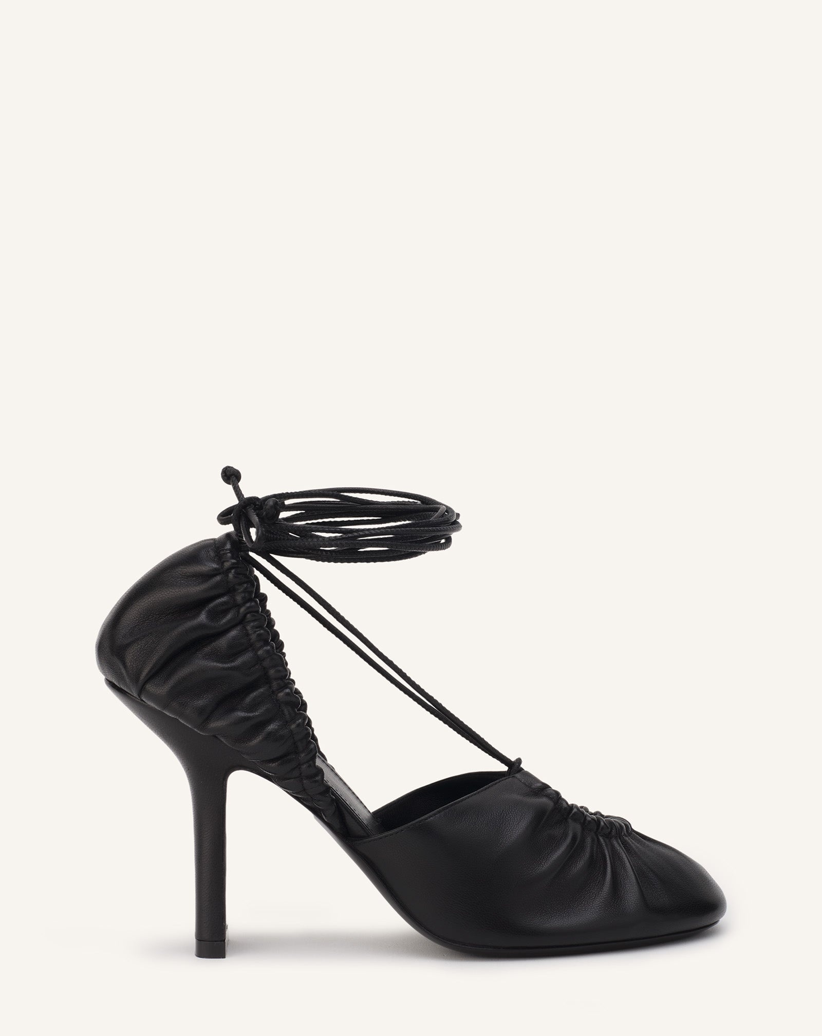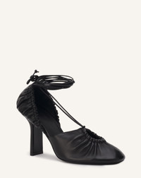 Taking their inspiration from the lexical field of music, these supple Mesure pumps with straps are sleek and minimalist. Their square heel provides extra stability while playing on the visual illusion of a very thin heel in profile. The soft leather is pleated, evoking the drapery of the Charmeuse dress, an iconic piece from the House. The strap, reminiscent of Jeanne Lanvin's signature Ribbon, can be tied any way you like. Details - Round toe - Square heel - Criss-cross straps - Lanvin logo embossed on the insole - Made in Italy Size & fit - This style fits true to size, you may take your usual size. - The size displayed corresponds to a French size SKU: FW-PUMP0W-NAPA-E251041