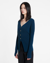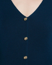 Featuring a unique blend of heritage and contemporary aesthetics, this cardigan is adorned with buttons inspired by the “Mélodie” dresses created by Jeanne Lanvin between 1921 and 1939. Details - Rib-knit cardigan - Can be worn off the shoulders - Fitted cut with defined waist - Long puff sleeves with flared cuffs - Front closure with Mélodie jeweled buttons - Color: sapphire - Made in Italy Size and fit - This style fits true to size, take your usual size. - For more information, please see our size guide. Composition - Main fabric: 80% merino wool, 17% polyamide, 3% elastane Cleaning and care - All our items are shipped in a luxurious Lanvin gift box done in the colors of the brand. - At Lanvin, we take great care to ensure we only select the finest materials. Please check the care label on your ready-to-wear item before proceeding with any cleaning. - If you have a question or concern, please contact our customer service department or visit one of our stores, where our staff will be happy to assist you and provide you with more information about our services. SKU: RW-CA0007-K010-H23271XS