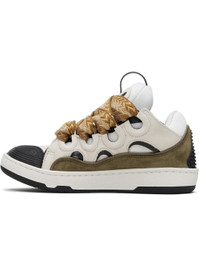 Low-top calfskin suede, nappa calfskin, and mesh sneakers. · Piping, cutouts, and rubberized trim throughout · Perforations at toe · Logo embossed at toe and outer side · Lace-up closure · Logo plaque and pull-loop at tongue · Padded tongue and collar · Jersey lining · Treaded rubber sole Supplier color: White/Khaki Upper: calfskin, textile. Sole: rubber. Made in Portugal 252254F128000