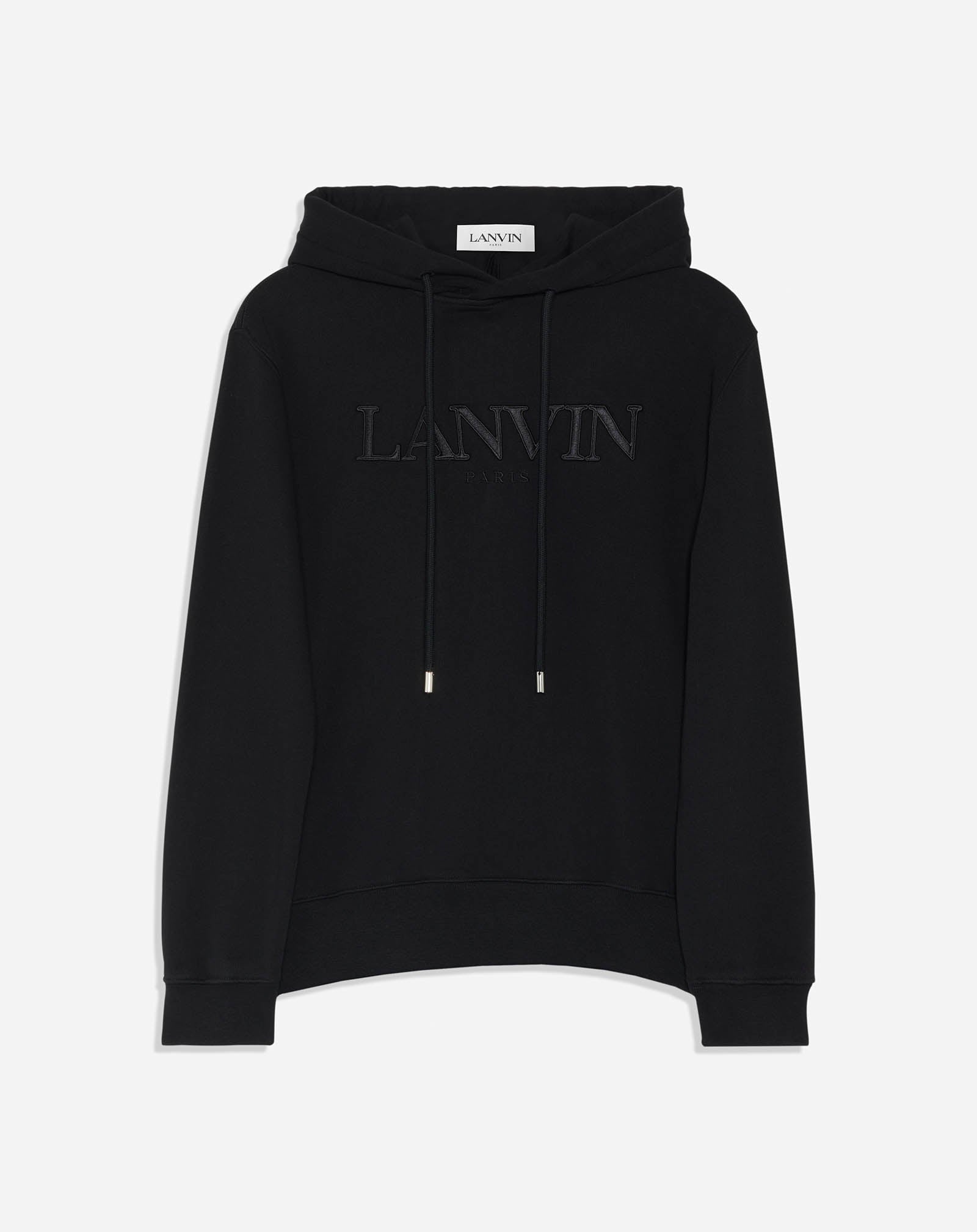 Details - Hooded sweater, regular fit, in cotton fleece decorated with a tone-on-tone Lanvin Paris logo. - Color: Black - Made in Portugal Composition - Main Material: 100% cotton Cleaning and care - Gently iron on the reverse side SKU: RW-HO0003-J017-H2210L