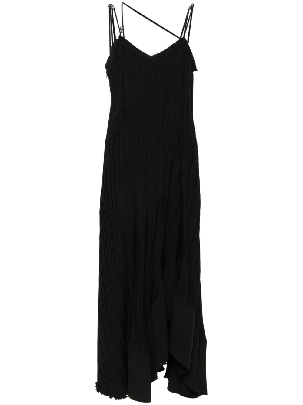 asymmetric-hem pleated dress Highlights - Black - Fully pleated - Bead embellishment - Ruffled detailing - Spaghetti straps - V-neck - Sleeveless - Unlined - Asymmetric hem - Concealed side zip fastening Imported Composition Brass 100%, Rayon 100%, Polyester 100% SIZE & FIT Model measurements Height 5 ft 11 in(1.8 m) Bust/Chest 32.67 in(83 cm) Hips 36.22 in(92 cm) Waist 24.4 in(62 cm) FittingInformation Designed for a close fit at the chest with a loose fit over the waist and hips Made from a midweight non-stretch fabric This piece fits true to size – take your usual size