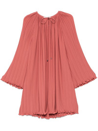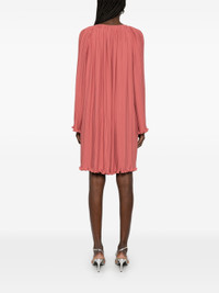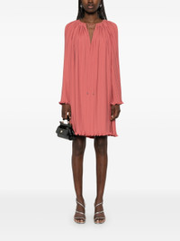 Dress woman in rose-pink polyester, round neck, long sleeves, pleated design, wavy hem detail, 100% polyester, Made in Slovakia, model is 180 cm and wears size 40100% polyester - Color: PINK - Made in: Slovakia - Designer Style ID: RW-DR0028 5904-P25 597 Composition and care Polyester: 100.0%