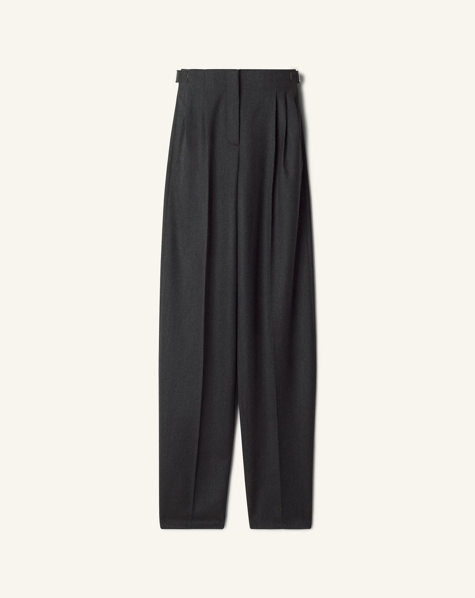 These pants elongate the silhouette with striking elegance. They are crafted from wool flannel, a fabric that creates a sturdy, wrinkle-resistant garment. It is both warm and soft, making it the ideal choice for winter wear. Details - Pleated flannel pants - Full-length, wide leg - Metal zipper and hook closure - Side pockets - Adjustable tabs - Made in Italy Size & fit - For more information, please see our size guide. Composition - Main fabric : 100% wool woven - Lining : 100% cotton woven SKU: RW-TR0027-6150-H251836