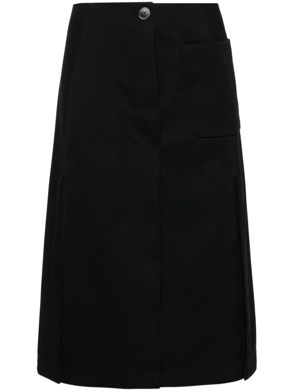 pleated tailored midi skirt Highlights - Black - Wool - Pleat detailing - Front button fastening - Front patch pocket - Straight hem Made in Italy Composition Lining: Viscose 100% Outer: Wool 100% SIZE & FIT Model measurements Height 5 ft 10 in(1.78 m) Bust/Chest 33.07 in(84 cm) Hips 36.61 in(93 cm) Waist 24.8 in(63 cm) FittingInformation This midi-length skirt is intended to be worn high on the waist The vented hem offers movement at the rear Made from a midweight non-stretch fabric This piece fits true to size – take your usual size Washing instructions Dry Clean Only