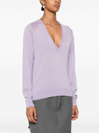 pointelle-trim sweater Highlights - Lavender purple - Fine knit - Pointelle trim - Ribbed v-neck - Long sleeves - Ribbed cuffs and hem Made in Italy Composition Virgin Wool 39%, Cashmere 30%, Silk 30%, Polyamide 1% SIZE & FIT Model measurements Height 5 ft 10 in(1.77 m) Bust/Chest 33.07 in(84 cm) Hips 37 in(94 cm) Waist 24.8 in(63 cm) FittingInformation Designed for a relaxed fit, this piece allows for comfort and movement when worn The ribbed hem offers a close, comfortable fit Made with a lightweight knit, this piece offers some stretch
