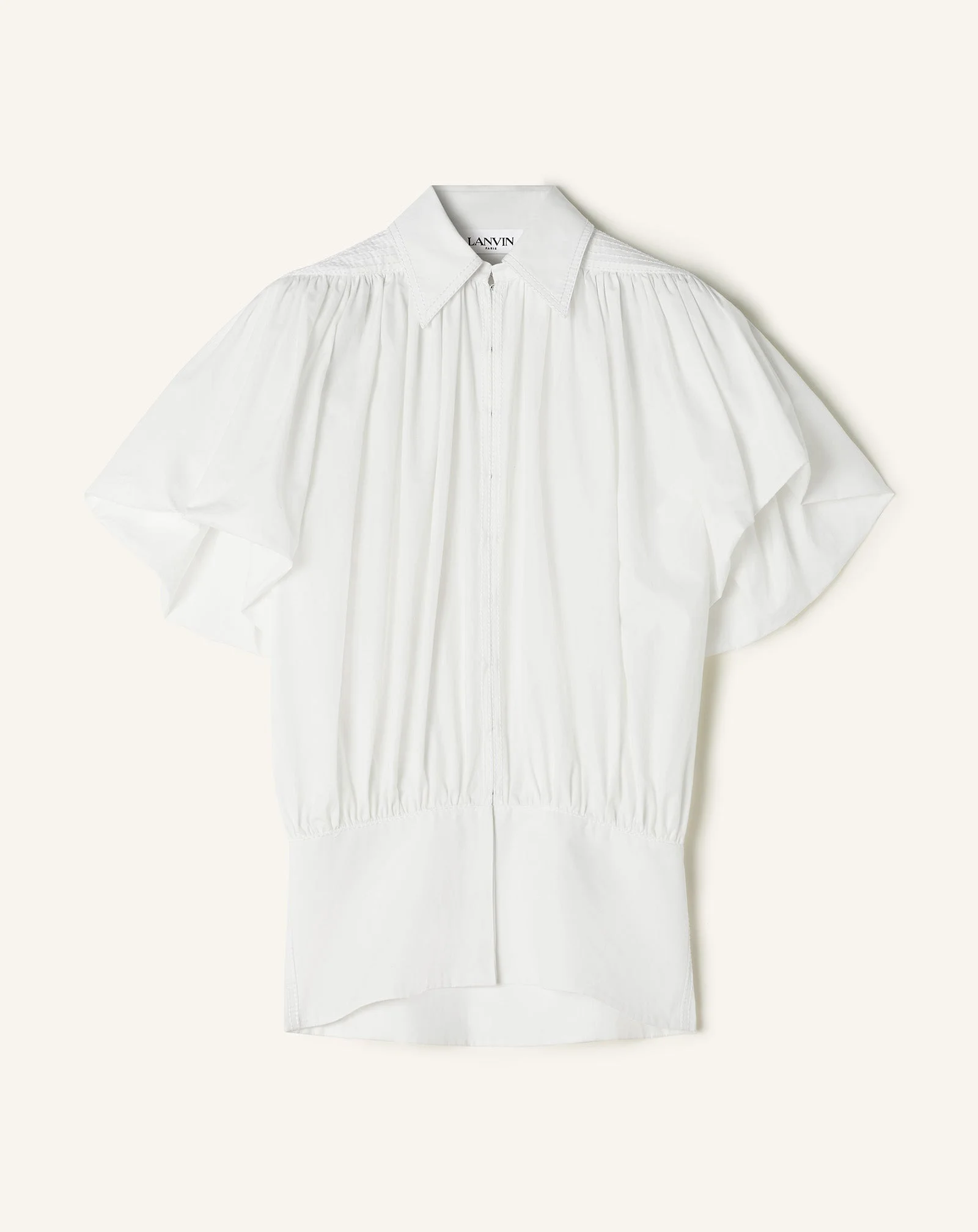 The rounded volumes of this top, crafted from cotton poplin, create a feminine silhouette. This piece is also wrinkle-resistant, making it the perfect choice for all-day wear with an elegant outfit. Details - Cotton puff-sleeve top - Loose fit and pleated design. - Fitted at the waist - Shirt collar - Hook closure - Topstitching details on the back - Made in Portugal Size & fit - For more information, please see our size guide. Composition - Main fabric : 100% silk woven SKU: RW-TO0010-6166-H2502036