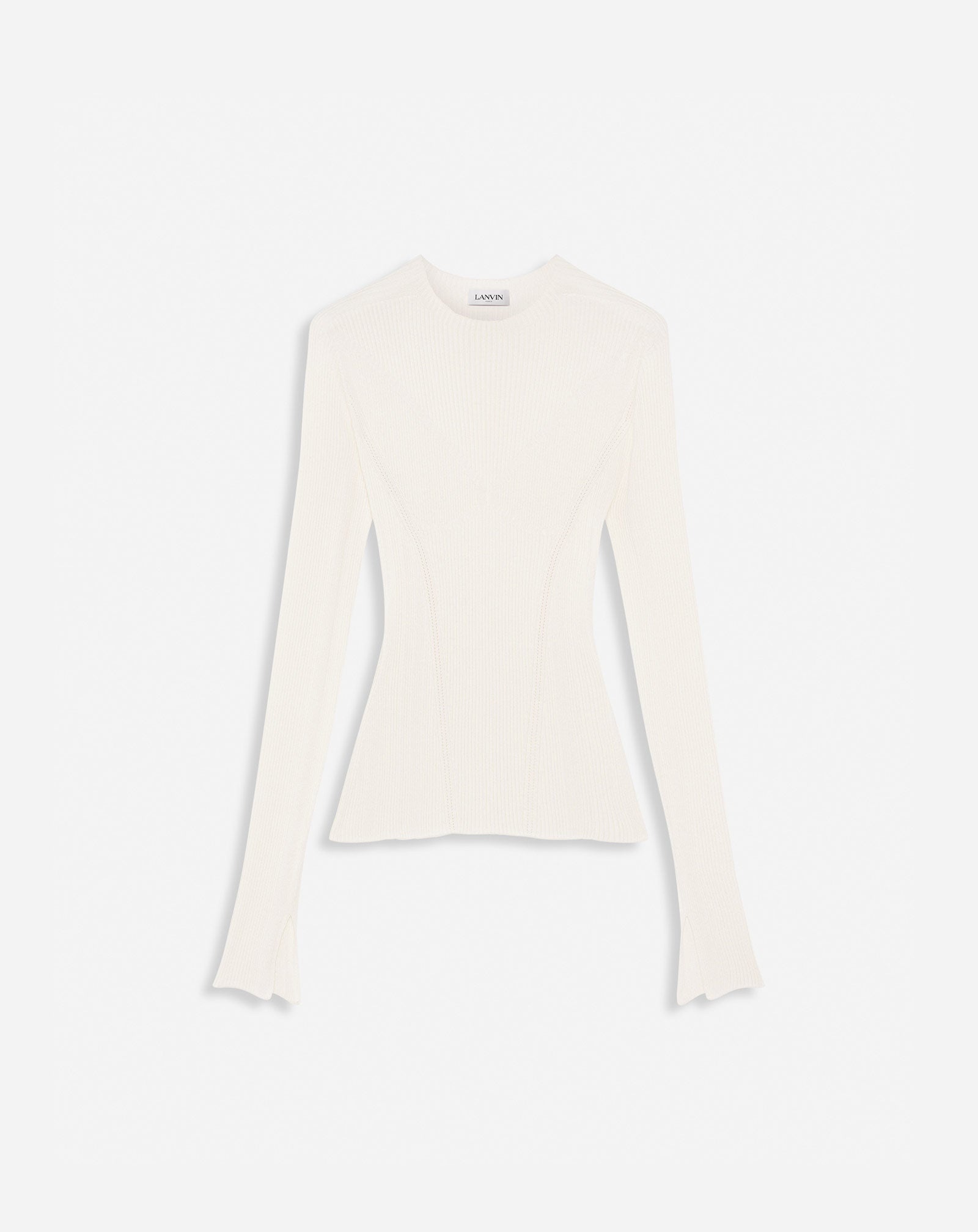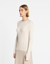 Details - Fine-ribbed fitted top with a round neckline and long sleeves - The knit design highlights the feminine silhouette - Color: milk - Made in Italy Size and fit - The model is 189 cm / 6'2.5" tall - She wears a size S Composition - Main material: 35% silk, 30% virgin wool, 35% cashmere SKU: RW-PO0020-K004-A23012L