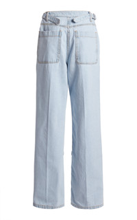 PRODUCT DETAILS - High-rise, cargo design, wide relaxed leg - Button and concealed zip fastening - Lined - Composition: 100% Cotton Woven/Lining : 100% Cotton Woven - Color: Light Blue - Dry clean only - Pre-Fall '25