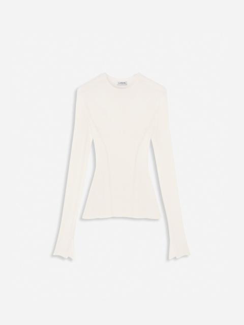 ROUND NECK LONG SLEEVE RIBBED TOP IN SILK AND CASHMERE