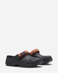 Lanvin and Suicoke have joined forces for a second collaboration, combining key pieces from the Japanese brand with the Curb's famous herringbone laces. Details - Lanvin x Suicoke clogs in EVA rubber - Color: Black - Made in Italy Size and fit - Adjustable herringbone-lace strap with a Lanvin Suicoke label - Cut-outs on the sides - Embossed Suicoke logo on the insole and outsole - Notched sole Composition - Main material: EVA - Lining: EVA - Sole: EVA Cleaning and care - Store in a dry, dark place in their original packaging. SKU: FW-CSSS0M-EVAT-A231037
