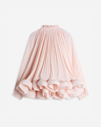 Details - Ruffled blouse in a floral jacquard Charmeuse with long sleeves - Gathered at the collar and cuffs - The collar can be tightened with drawstrings - Color: pale pink - Made in Slovakia Composition - Main material: 100% polyester Cleaning and care - Requires very delicate care - Have cleaned by a luxury dry cleaning specialist only - Gently iron on the reverse side SKU: RW-TO0015-5642-E235136