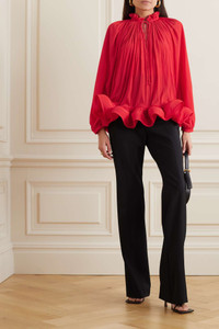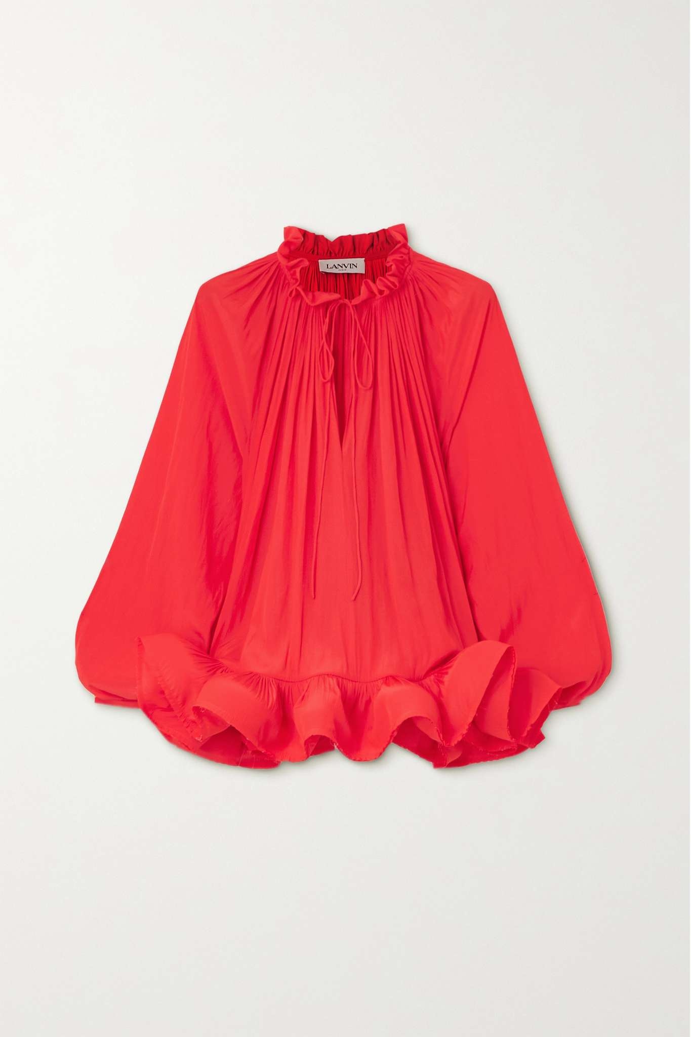EDITORS'NOTES Lanvin's blouse has a romantic, Victorian-inspired feel. It's made from lightweight recycled-voile that's gathered to drape beautifully over your frame and has a ruffled neck and hem, the latter of which is padded to keep the pretty shape. Lace the ties up in a dainty bow. SIZE & FIT - Fits true to size, take your normal size - Designed for a loose fit - Short in the sleeves - Lightweight, fluid, non-stretchy fabric - Model is 175cm/ 5'9" and is wearing an IT 40 DETAILS & CARE - Red recycled-voile - Ties at front - 100% recycled polyester - Dry clean - Designer color: Poppy Red