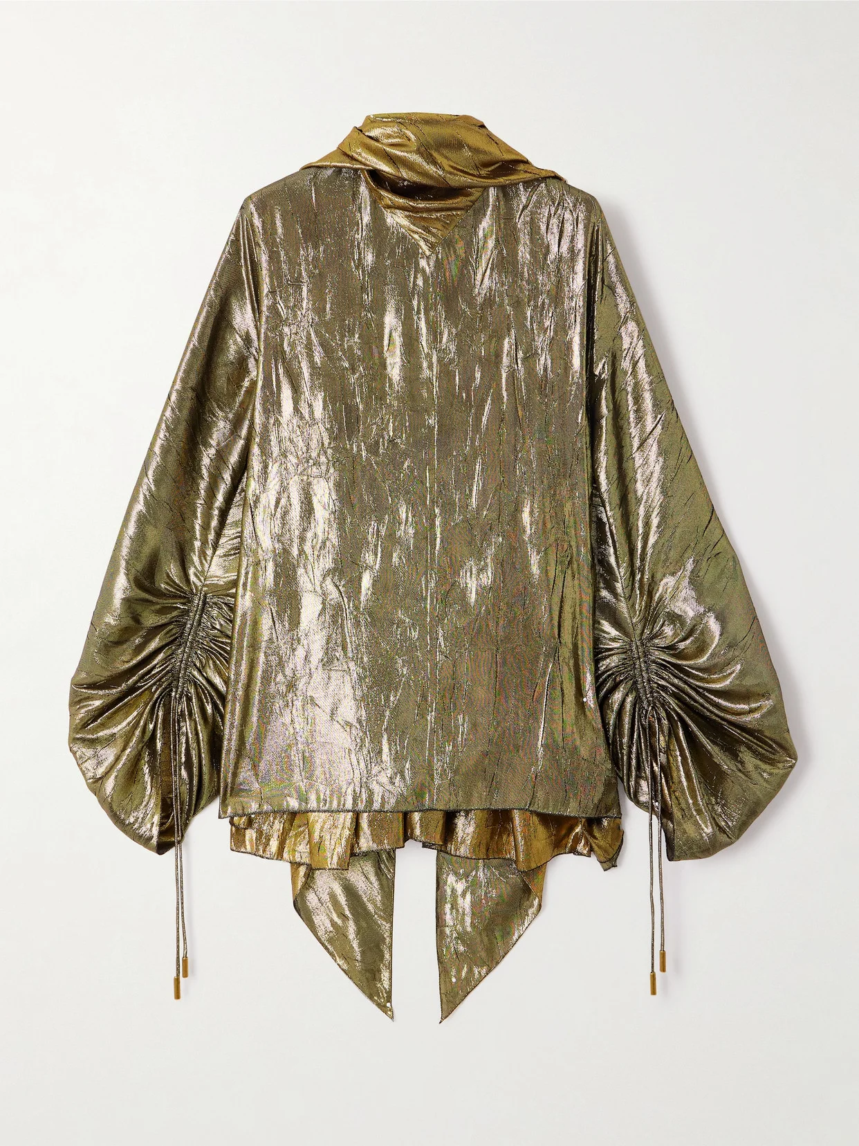 Artistic Director Peter Copping's inaugural Fall '25 collection channels the spirit of Lanvin's le chic ultime with bold, luxurious fabrics like the metallic lame used to make this blouse. It's been made in Italy with dramatic, adjustable sleeves and an elegant scarf. Tuck yours into tailoring.