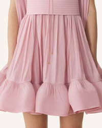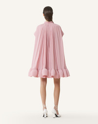 Details Short flowing Charmeuse fabric dress with short sleeves. The neck tie and fitted waist with a wide belt help to enhance the silhouette. The horsehair adds volume and lightness to the dress. Color: Pink Made in Slovakia Composition Main material: 100% polyester Care Have cleaned by a luxury dry cleaning specialist only Gently iron on the reverse side Very delicate care SKU: RW-DR209U-4778-H205036