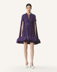 Details - Short dress in charmeuse - Short sleeve short dress in Charmeuse with bottom ruffles and fitted waist. - The dress features a topctitched belt and presents a generous volume for a glamorous and floaty look. - Made in slovakia Composition - Main material: 100% Japanese satin SKU: RW-DR209U-4778-H207942