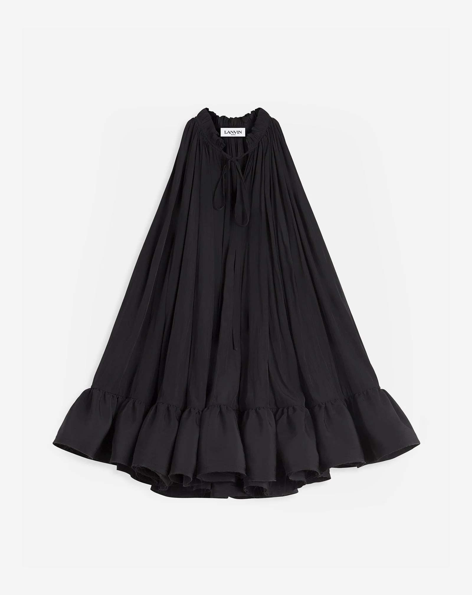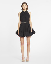 The ruffles placed at the bottom of this dress create an elegant movement, while creating a very feminine silhouette. The stand-up collar features a tone-on-tone drawstring for a delicate detail. Details - Short dress with ruffles - V-neck with a drawstring - Slip-on - Made in Slovakia Size & fit - This style fits true to size, take your normal size - For more information, please see our size guide. Composition - Main fabric : 100% polyester woven SKU: RW-DRC073-4778-A24101