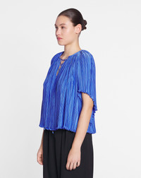 This blouse is made with a charmeuse Korean satin fabric with pleats that help create a fluid, light silhouette. The pleating technique used gives the garment a bright, sophisticated look, while making it very easy to maintain. Details - Short-sleeved blouse in Korean satin - Pleated charmeuse-style fabric - Laced neckline Size & fit - For more information, please see our size guide. Composition - Main fabric : 100% polyester woven SKU: RW-TO0101-5944-E2416636
