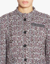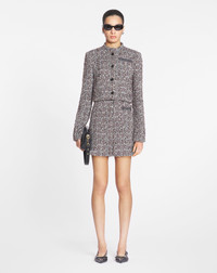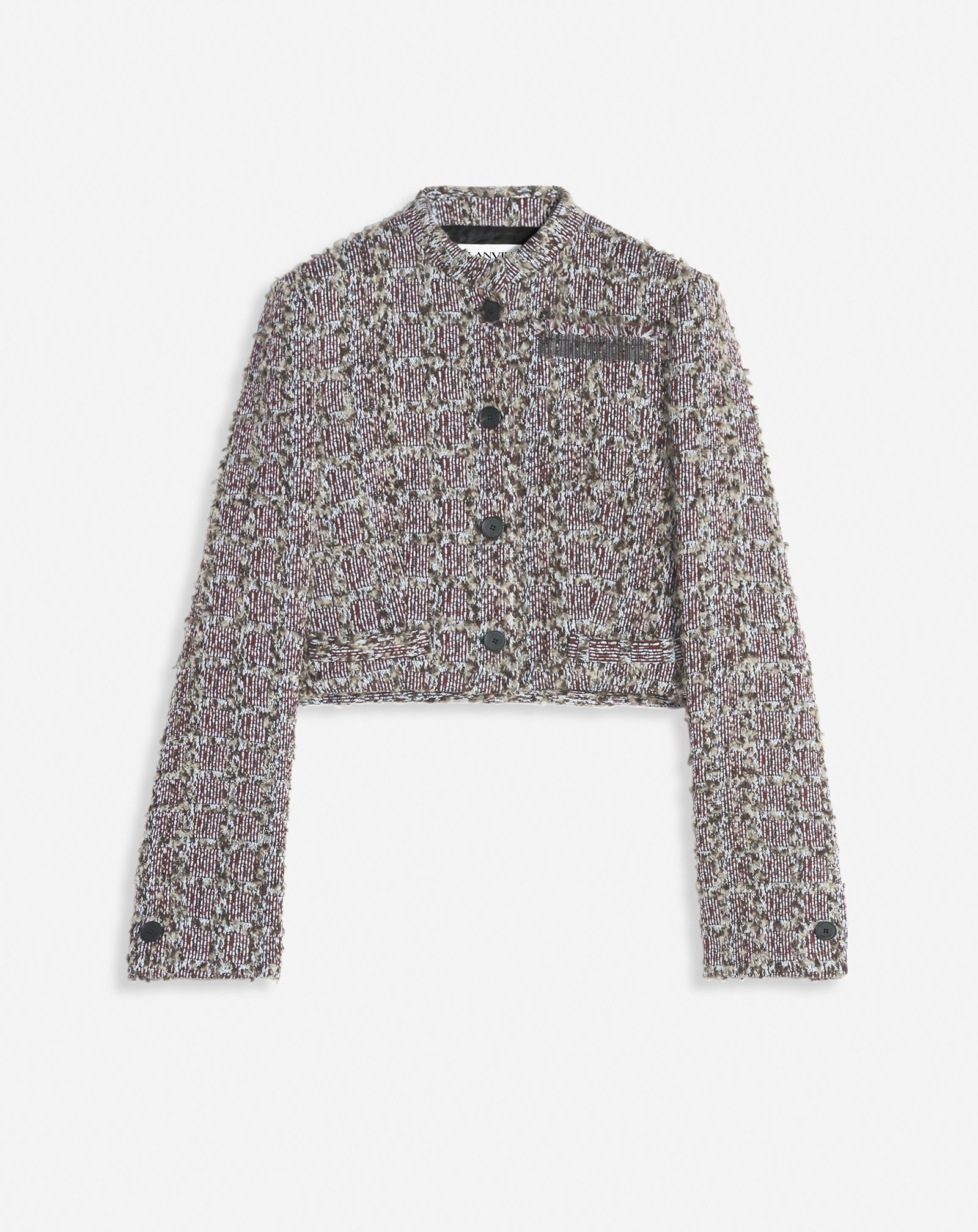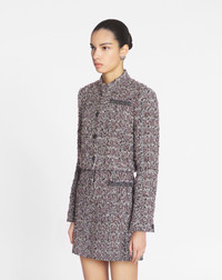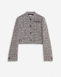 This jacket features a fitted waist with visible buttons down the front. The tweed used to make it was developed exclusively for Lanvin in the Malhia Kent workshops. It blends yarns of different textures and colors, echoing the main tones of the Fall 2024 collection. Details - Short tweed jacket - Buttoned fastening - High collar - Made in Italy Size & fit - This style is fitted, size up if you prefer a more relaxed fit - For more information, please see our size guide. Composition - Main fabric : 55% acrylic woven,36% cotton woven,5% wool woven,4% polyester woven - Lining : 100% viscose woven SKU: RW-JA0014-5966-A24392036