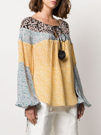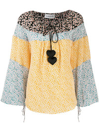The weather has got you feeling blue? This multicoloured silk heart embellished floral print blouse from Lanvin is bound to brighten up even the gloomiest of days. Save it for a rainy one. Featuring a small floral print, a drawstring hem, a heart pendant, a curved hem and long pagoda sleeves. Made in France Composition Silk 100%,Polyester 100%