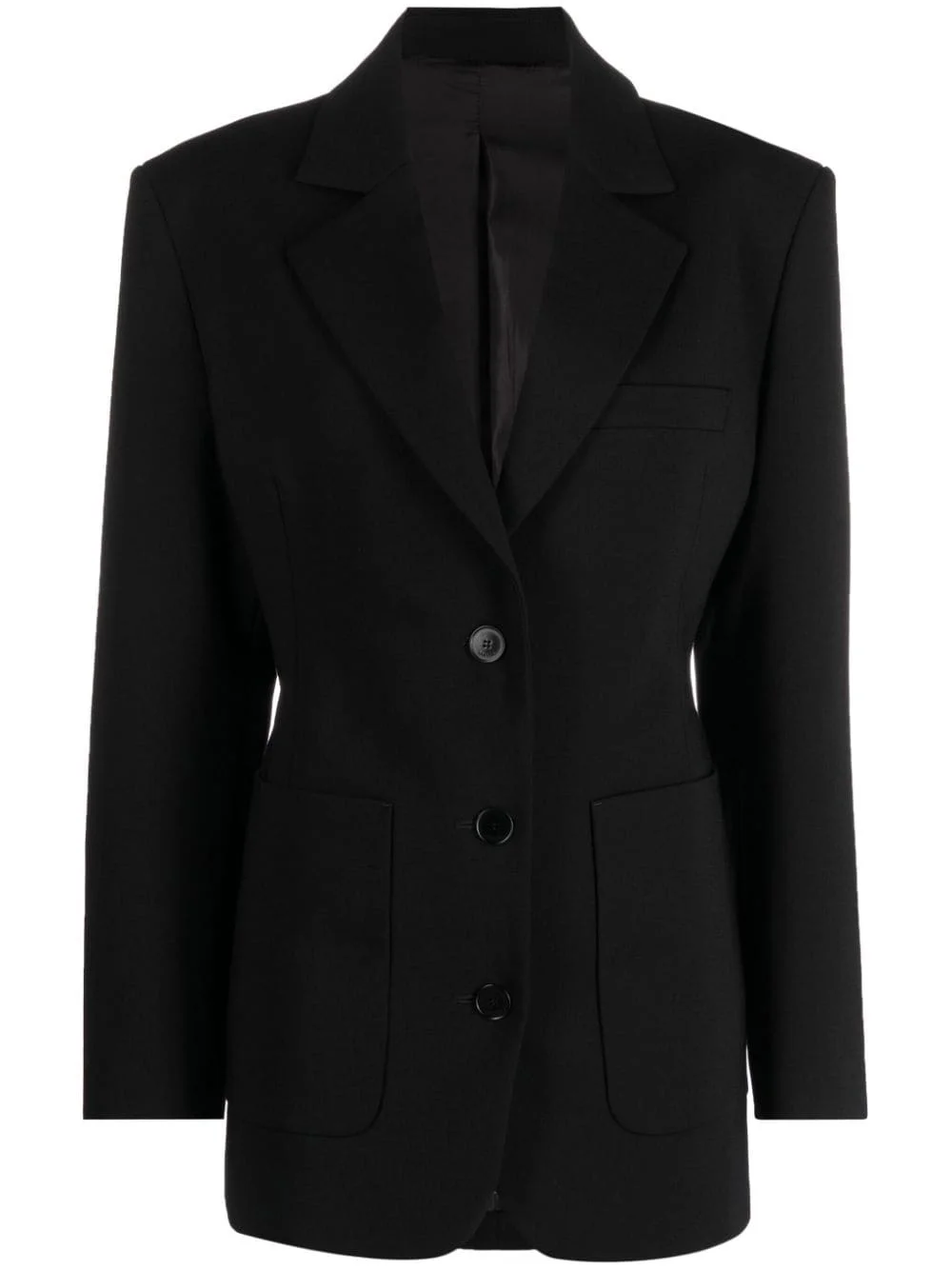 single-breasted blazer Designed and crafted in Italy, this Lanvin blazer is skillfully fashioned from stretch virgin wool in a classic black colourway. The tailored waist enhances the hourglass silhouette, creating flattering curves, while discreet pockets offer a practical touch. Highlights - Black - Virgin wool blend - Notched lapels - Shoulder pads - Long sleeves - Buttoned cuffs - Front button fastening - Chest welt pocket - Two front patch pockets - Straight hem - Full lining Made in Italy Composition Outer: Virgin Wool 93%, Spandex/Elastane 4%, Polyamide 3% Lining: Viscose 100% SIZE & FIT Model measurements Height 5 ft 10 in(1.79 m) Bust/Chest 32.67 in(83 cm) Hips 34.25 in(87 cm) Waist 24.4 in(62 cm) FittingInformation Designed for a slim fit that sits just away from the body offering a close yet comfortable fit The internal shoulder pads offer a structured shape Made from a midweight fabric This piece fits true to size – take your usual size