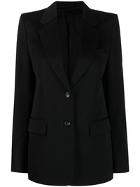 single-breasted blazer Lanvin's blazer riffs on traditional suiting. Tailored from virgin wool, this black iteration has notched lapels riffing on tuxedo silhouettes with a slightly curved shape. Highlights - Black - Virgin wool - Notched lapels - Front button fastening - Long sleeves Made in Italy Composition Outer: Buffalo Horn 100%, Virgin Wool 100% Lining: Cupro 100% SIZE & FIT Model measurements Height 5 ft 9 in(1.75 m) Bust/Chest 31.49 in(80 cm) Hips 34.05 in(86.5 cm) Waist 24.21 in(61.5 cm) FittingInformation Designed for a boxy fit, intended for a loose fit throughout The vented hem offers movement at the rear Made from a midweight non-stretch fabric This piece fits true to size – take your usual size