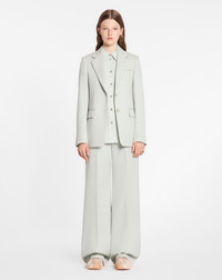 Details - Single-breasted blazer - Color: sage - Single-breasted two buttons half-lined tailored blazer featuring flap pockets. - As in classic menswear tailoring, Lanvin label is above inside left breast pocket. - Made in italy Composition - Main material: 100% virgin wool - Lining: 100% cupro Cleaning and care - Contains non-textile parts of animal origin - Very delicate care - Have cleaned by a luxury dry cleaning specialist only - Gently iron on the reverse side SKU: RW-JA0009-4885-P2340134