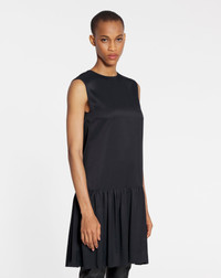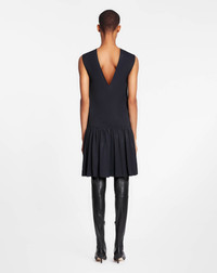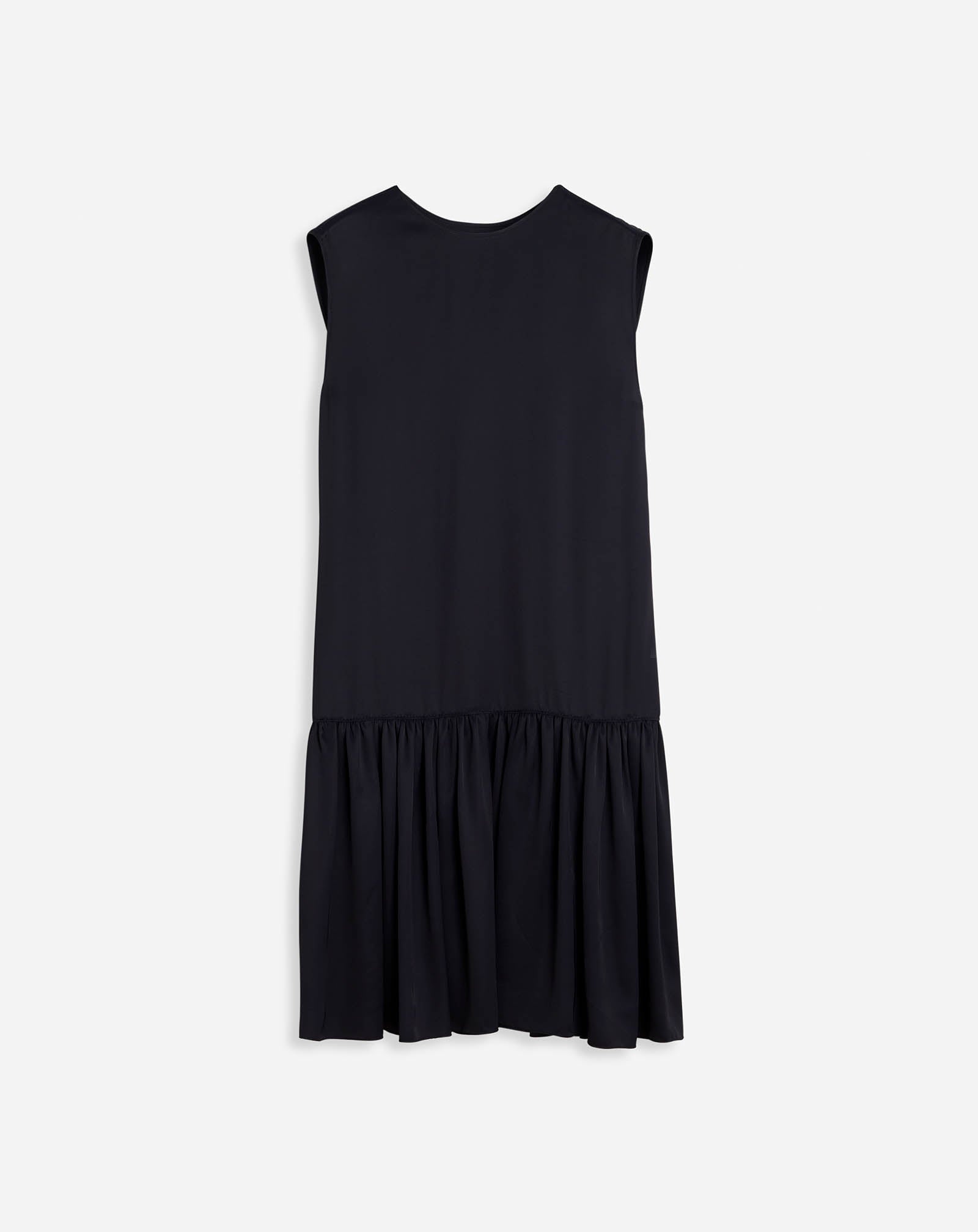 Details - Sleevless round neck dress with ruffles in satin - Color: black - Just above the knee fluid dress with flattering V neck opening at back. - 1920's silhouette. - Ruffle skirt allows movement. - Sleevless day to night elegant option. - Made in spain Composition - Main material: 100% viscose SKU: RW-DR0101-5584-P231034