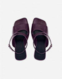 The 105mm Smile by Lanvin sandals are derived from the flagship sandal of the Summer 2022 fashion show. With a feminine and curved heel, they will complement any day or evening outfit with style, comfort and stability. Size and fit - Heel height: 105 mm Composition - Main material: 100% karung - Lining: 100% lambskin - Sole: 100% calfskin Cleaning and care - Rub the leather with a damp cloth and a dab of suitable moisturizer. Wipe gently with a soft, dry cloth. FW-SAAS0I-KANA-E2279