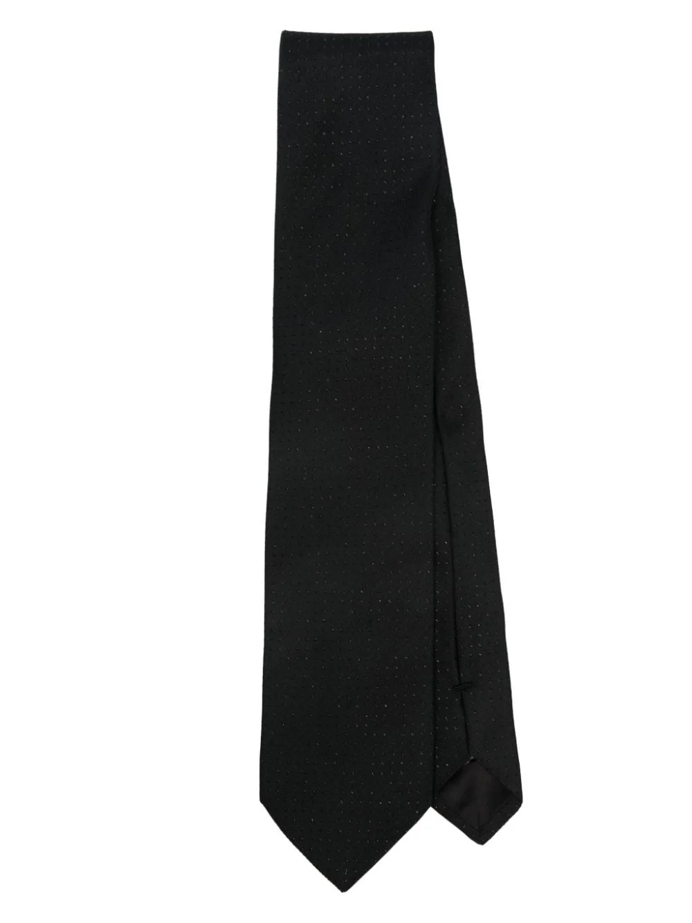 sparkly satin tie Highlights - Black - Silk blend - Twill weave - Satin finish - Sparkly detailing - Pointed tip - Internal logo tag - Adjustable fit Made in Italy Composition Silk 81%, Metallic Fibre 19%