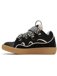 Low-top calfskin nubuck and mesh sneakers in black. · Piping, cutouts, and rubberized trim throughout · Perforated detailing at toe · Logo embossed at toe and outer side · Lace-up closure · Logo plaque and pull-loop at tongue · Padded tongue and collar · Jersey lining · Treaded rubber sole Available exclusively at SSENSE. Supplier color: Black/White Upper: calfskin, textile. Sole: rubber. Made in Portugal 251254F128016