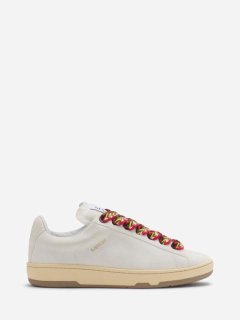 Inspired by vintage skate sneakers, the Lite Curb—a new low-top style featuring the herringbone laces of our iconic Curb—is perfect for a minimalist look. Details - Suede Lite Curb sneakers - Color: Pale pink - Made in Portugal Size and fit - Tongue with Lanvin label and Mother and Child logo - Gold LANVIN logo on the side - Two lace options: pale pink or multicolored - Exclusive rubber sole Composition - Main material: calfskin - Lining: calfskin - Sole: Rubber Cleaning and care - Clean gently with a soft cloth. - Store in a dry, dark place in their original packaging. SKU: FW-SKDK0B-VESU-A235135