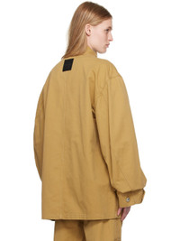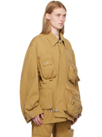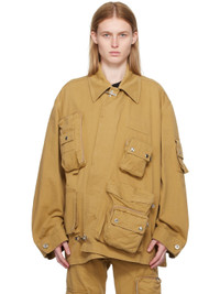 Cotton twill jacket. · Spread collar · Lanyard clasps at offset concealed button closure · Zip pockets and flap pockets · Dropped shoulders · Flap pocket at sleeve · Adjustable button tab at barrel cuffs · Calfskin logo patch at back collar · Logo-engraved silver-tone hardware Part of the Lanvin x Future collaboration, within the Lanvin Lab collection. Supplier color: Sand Body: 100% cotton. Trim: 100% calfskin. Made in Italy 241254F063005