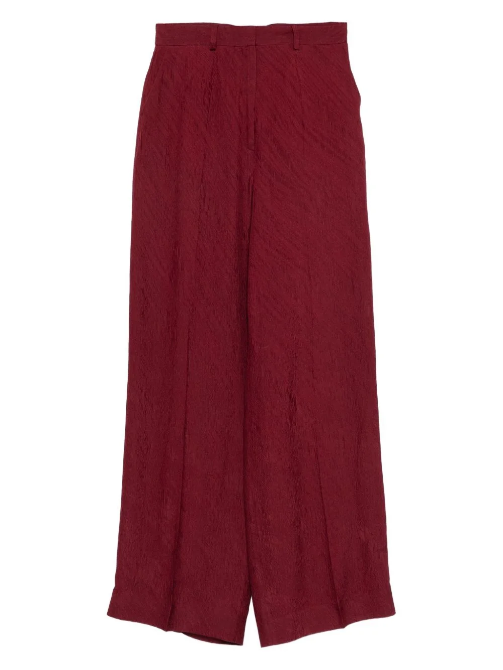 textured trousers Highlights - Red - Wide leg - Textured weave - High waist - Straight hem - Concealed front fastening Imported Composition Outer: Mother of Pearl 100%, Viscose 82%, Silk 18% Lining: Cupro 100% SIZE & FIT Model measurements Height 5 ft 10 in(1.78 m) Bust/Chest 33.46 in(85 cm) Hips 36.22 in(92 cm) Waist 23.22 in(59 cm) Washing instructions Dry Clean Only