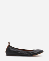 The Winter 2023 collection marks the return of a Lanvin icon: the ballerina flat, the house's signature shoe since the early 2000s. Combining elegance, simplicity and comfort, the must-have ballerina flat is perfect for a “casual chic” look. Details - Round-toe ballerina flats in supple lamb nappa leather - 1 cm flat heel - Tone-on-tone leather pull tab on the back with an embossed Lanvin logo - Leather insole with a stitched Lanvin logo - Made in: Italy Size & fit - If you typically wear half sizes, please take the next size up. - The size displayed corresponds to a French size. Composition - Upper: 90% lambskin, 10% calfskin - Lining: 80% calf skin, 20% goatskin - Sole: 100% cow leather SKU: FW-BAMB02-NAPA-P241035