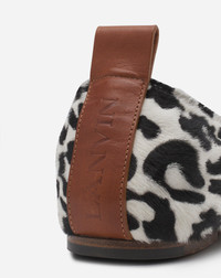 The collection welcomes the return of a House icon: the ballerina flat. This signature Lanvin shoe, which has been emblematic since the early 2000s, combines elegance, simplicity and comfort. It is a must-have and is perfect for a chic, casual outfit. Details - Made in Italy - Pony-effect leopard print leather ballet flats - Leather pull tab in back with an embossed Lanvin logo - Leather insole with a stitched Lanvin label - Round toe - Made in Italy Size & fit - This style fits true to size, you may take your usual size. Composition - Lining : 80% calf - bos taurus,20% goatskin - Sole : 100% cow bos taurus SKU: FW-BAMB02-LEPO-P24001035