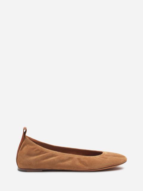 The House's iconic shoe of the 2000s, the ballerina flat is back, with a design that blends elegance, simplicity and comfort. A Lanvin style essential, the ballerina flat is perfect for a look that is both elegant and casual. Details - Suede ballerina flat - Round toe - Flat heel - Leather and tone-on-tone back pull tab with an embossed Lanvin logo - Leather insole featuring a sewn Lanvin label - Slip-on - Made in Italy Size & fit - The size displayed corresponds to a French size - This style fits true to size, you may take your usual size. SKU: FW-BAMB02-VESU-A246036