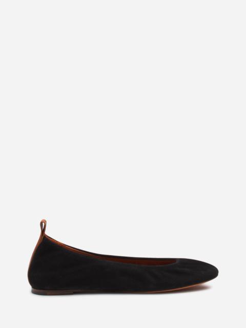 The House's iconic shoe of the 2000s, the ballerina flat is back, with a design that blends elegance, simplicity and comfort. A Lanvin style essential, the ballerina flat is perfect for a look that is both elegant and casual. Details - Suede ballerina flat - Round toe - Flat heel - Leather and tone-on-tone back pull tab with an embossed Lanvin logo - Leather insole featuring a sewn Lanvin label - Slip-on - Made in Italy Size & fit - The size displayed corresponds to a French size - This style fits true to size, you may take your usual size. SKU: FW-BAMB02-VESU-A241035