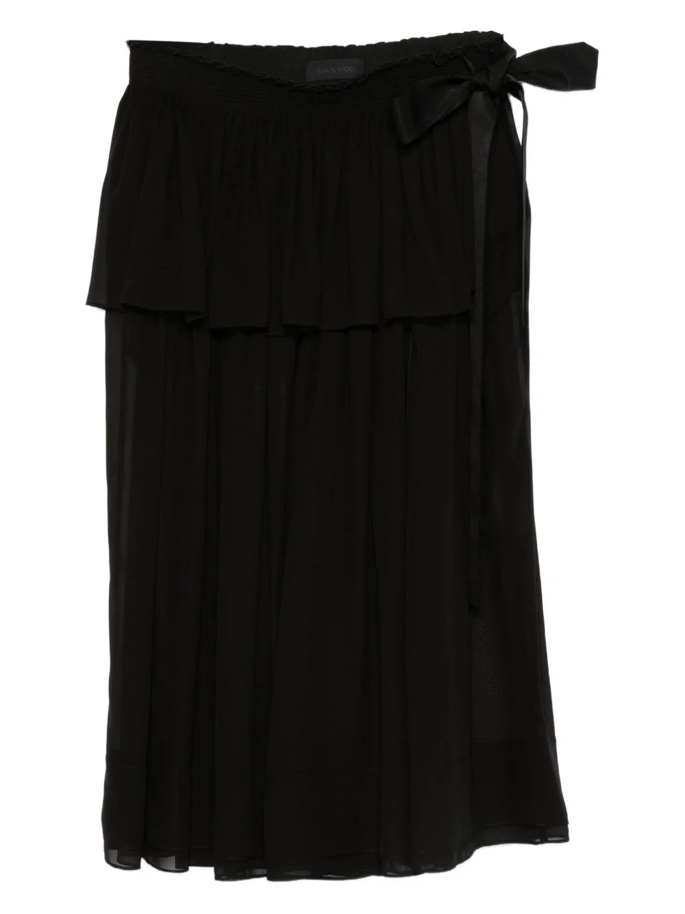 tiered-bow trousers Highlights - Black - Silk - Tiered design - Bow detail - Elasticated waistband Imported Composition Silk 100%, Viscose 100%, Mother of Pearl 100% SIZE & FIT Model measurements Height 5 ft 9 in(1.76 m) Bust/Chest 31.88 in(81 cm) Hips 35.43 in(90 cm) Waist 24.8 in(63 cm) Washing instructions Dry Clean Only