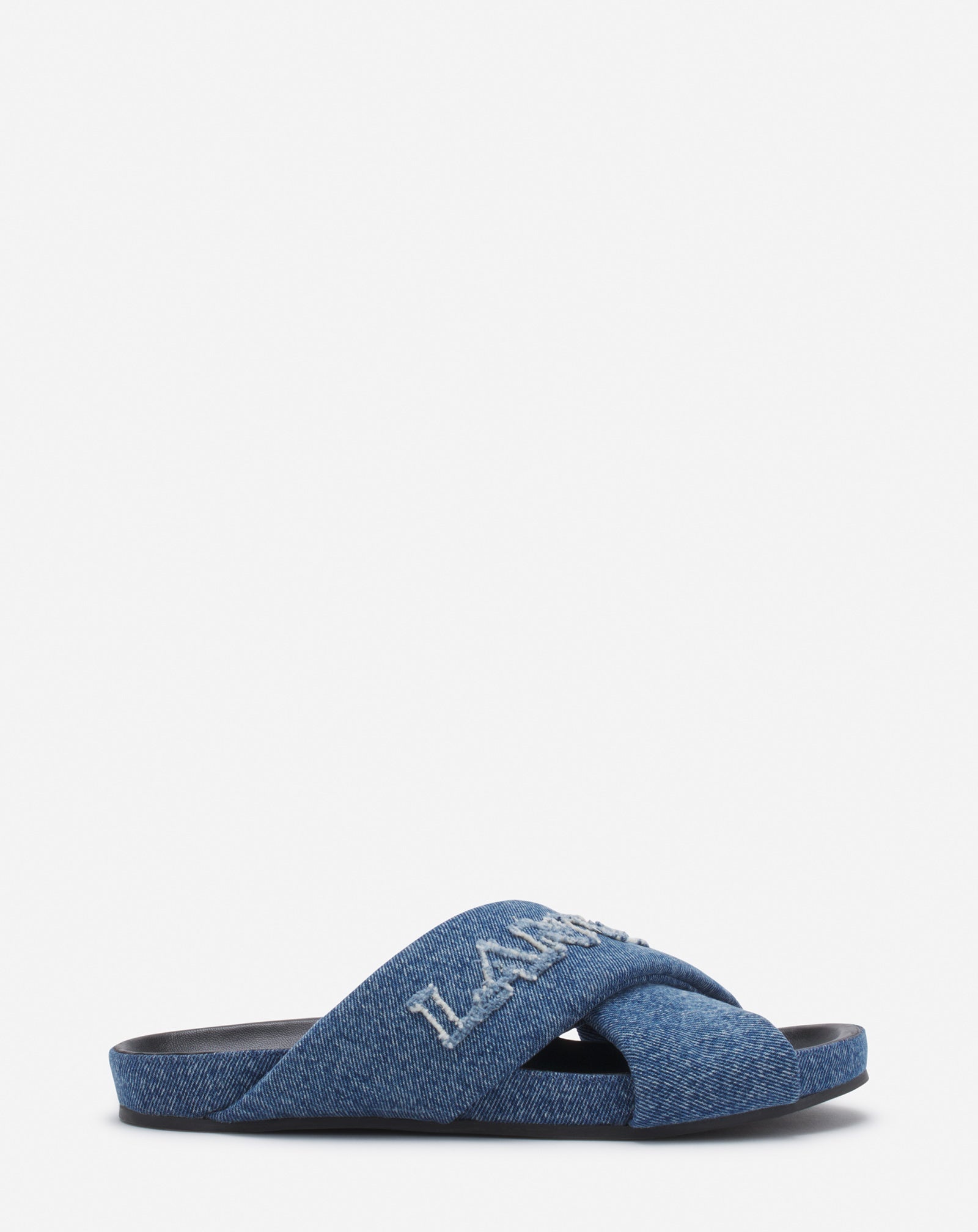 This iconic sandal features an ergonomic, foot-friendly outsole and the Lanvin logo in frayed denim. It's perfect for a summer look. Details - Lanvin Tinkle sandal in denim - Round toe - Compensated heel - Oversized padded upper for a comfortable feel - Lanvin logo embroidered in frayed denim - Made in Italy Size & fit - This style fits true to size, you may take your usual size. - The size displayed corresponds to a French size SKU: FW-SAMS0P-FRDE-E2425436