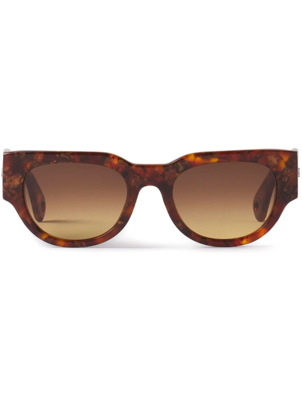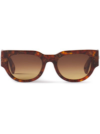 tortoiseshell-effect geometric-frame sunglasses Highlights - Brown - Acetate - Tortoiseshell effect - Geometric frame - Brown tinted lenses - Uv-protective lenses - Sculpted arms - Silver-tone logo lettering - Curved tips - Metal eyelet detailing - These glasses come with a protective case. Made in Italy Composition Acetate 100%, glass 100%