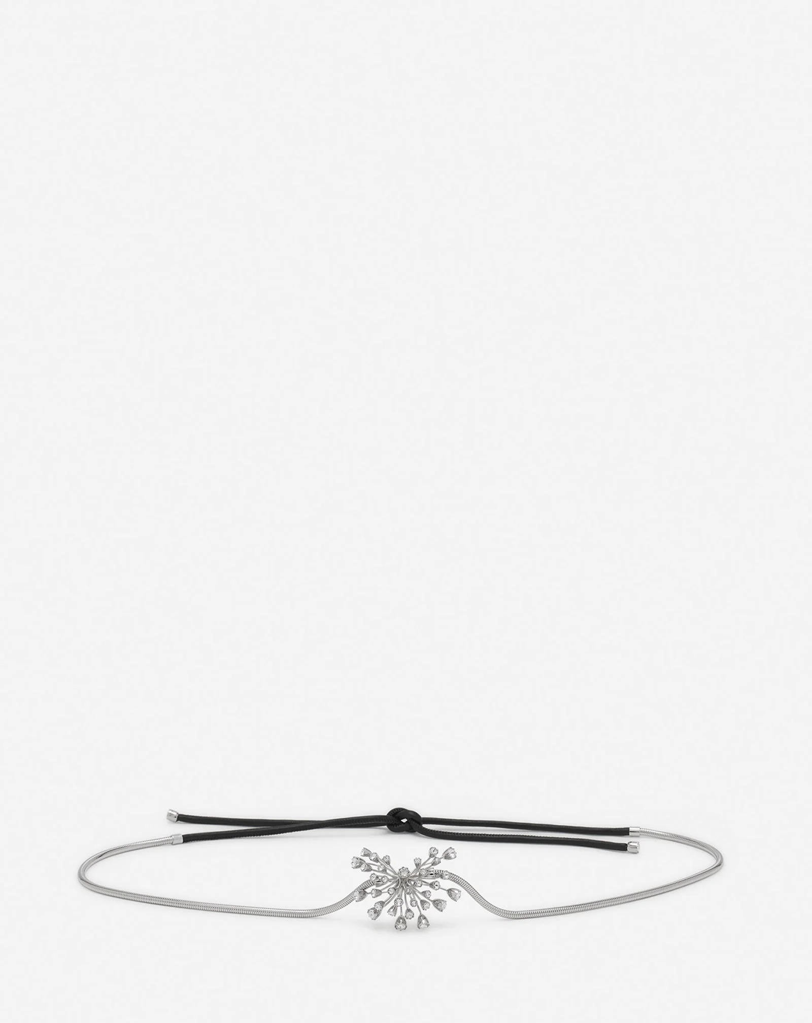 This Traviata by Lanvin belt takes its inspiration from Jeanne Lanvin's imaginary gardens. Modern and elegant, it goes perfectly with your dresses. Details - Traviata by Lanvin brass and leather belt - Flower decorated with crystals - Leather cord fastening - Made in Italy Composition - Main fabric : 100% brass SKU: AW-BEYB05-PIST-A24M2S2U