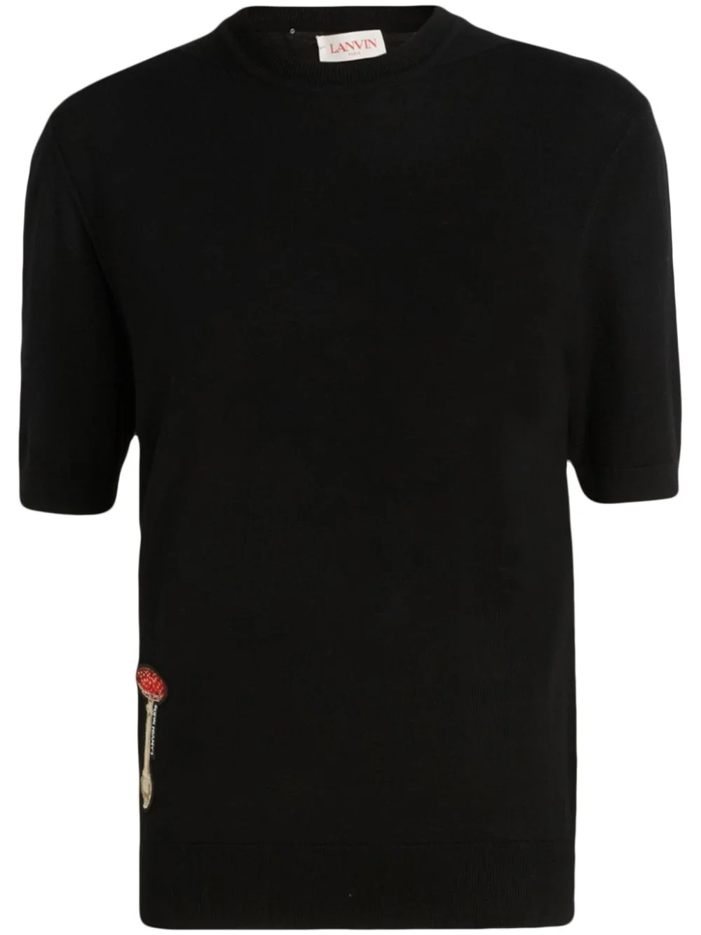 graphic print T-shirt Highlights - Black - Wool - Knitted construction - Bunny embroidered detailing - Crew neck - Short sleeves - Ribbed cuffs and hem Made in Italy Composition Wool 100%